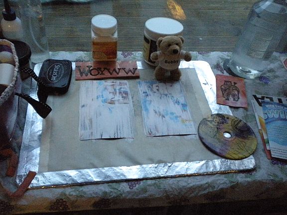 On the pink Kimono tag card I stamped some little stamps with bleach for a different look.